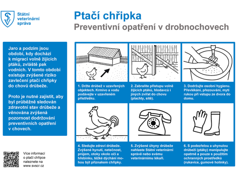 Informační leták PTAČÍ CHŘIPKA - PREVENTIVNÍ OPATŘENÍ V DROBNOCHOVECH * ke stažení po kliknutí ZDE