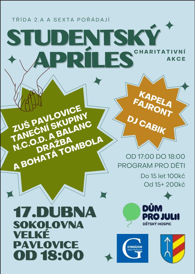 APRÍLES 2026 - charitativní akce Gymnázia Velké Pavlovice