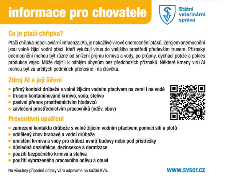 Informační leták INFORMACE PRO CHOVATELE - CO JE PTAČÍ CHŘIPKA * ke stažení po kliknutí ZDE