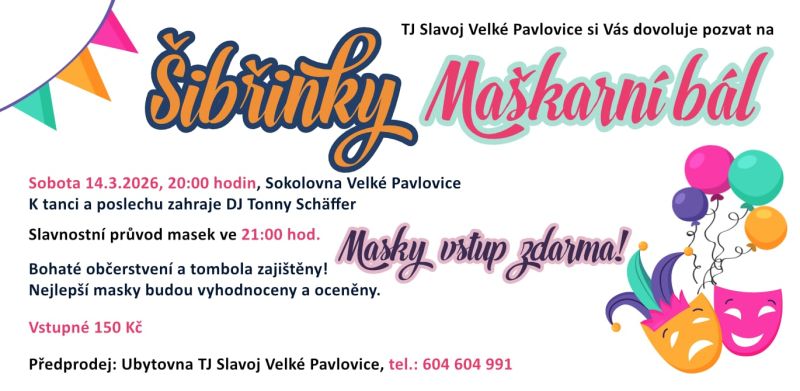 ŠIBŘINKY – MAŠKARNÍ BÁL s TJ Slavoj roku 2026
