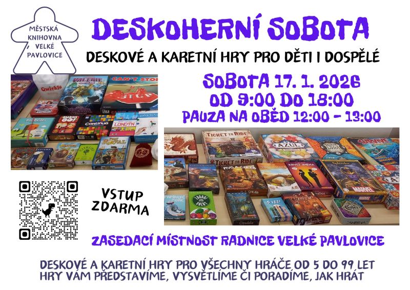Městská knihovna Velké Pavlovice pořádá a zve všechny milovníky deskových her na akci...