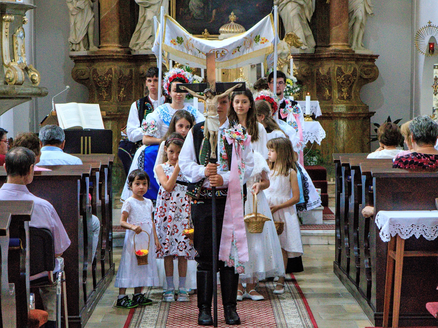 Božítělové procesí ulicemi města, poté mše svatá v kostele Nanebevzetí Panny Marie ve Velkých Pavlovicích